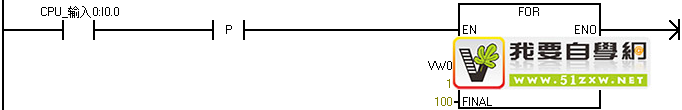 (2)启用FOR循环,EN端使能端不需要一直接通,只需要使用沿脉冲(上升沿)触发,INDX存放于循环次数使用字数据类型表示,INIT表示起始循环次数,FINAL表示结束循环次数。