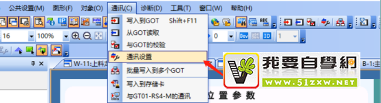 ⑥ 点击菜单栏“通讯”下拉“从GOT读取”/“写入到GOT”进行触摸屏的读取与写入;