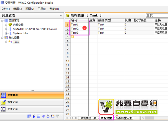2.新建3个结构变量“Tank1” “Tank2” “Tank3”;