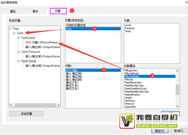 4. 把属性“FillLevelValue”对象属性拖拽至“Tank.Level”下。
