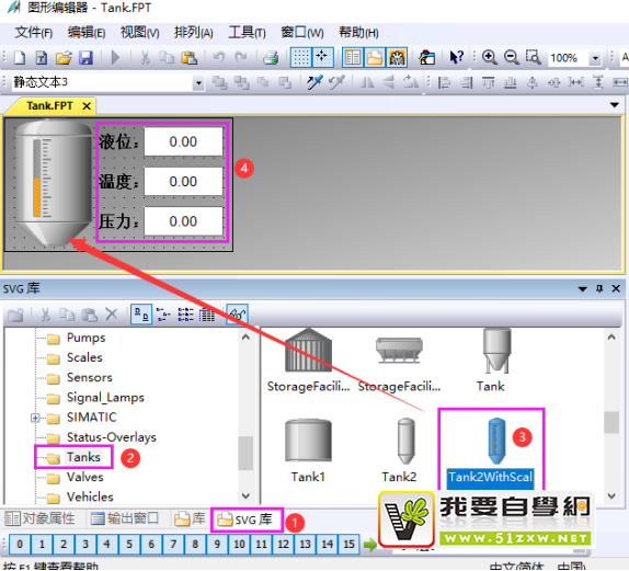 3. 在右侧结构变量列表中,通过鼠标右键选择“Tank1”后拖拽至画面中;