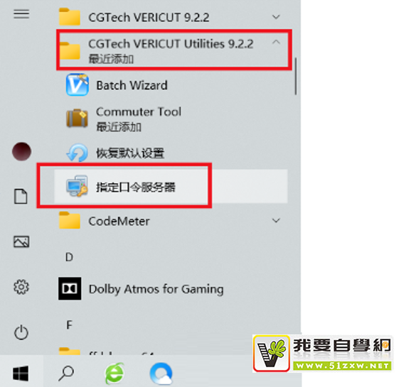 第18步:打开电脑开始菜单,找到CGTech VERlCUT Utilities 9.2.2,打开下面的“指定口令服务器”如下图所示