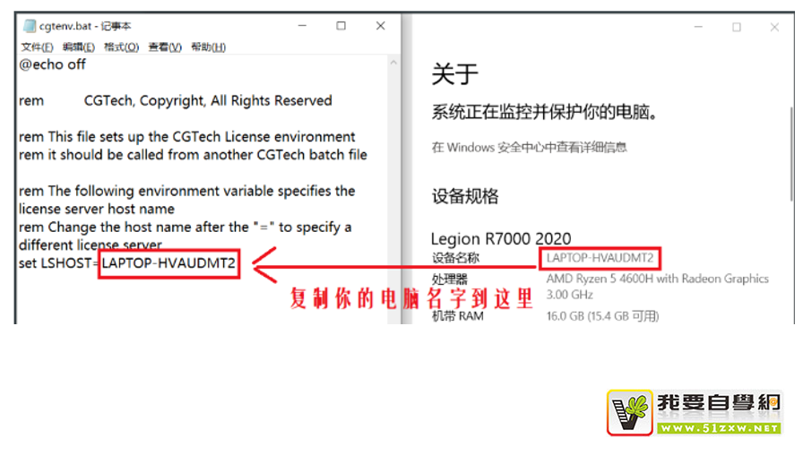 第19步:按下图位置所示,复制你的电脑名字,粘贴到 LSHOST= 后面的位置,然后点击保存退出