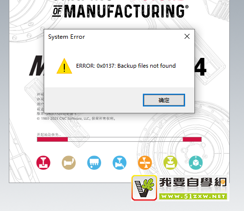 打开MasterCAM显示ERROR: Ox0137:Backup files not found,这种是许可证出现了问题。