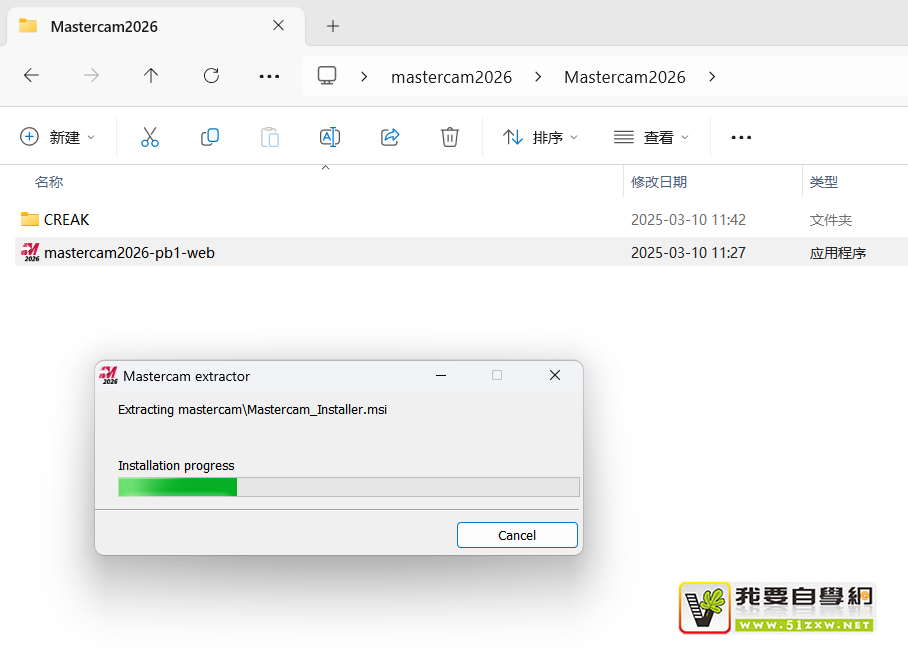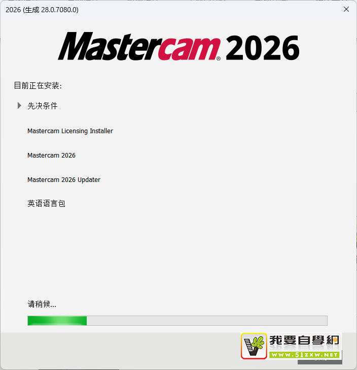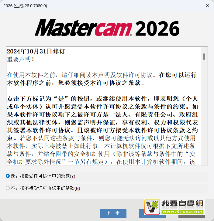 第一步:下载MasterCAM安装包,并运行mastercam2026-pb1-web,如下图所示,点击MasterCAM(R)2026安装。