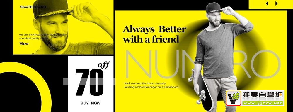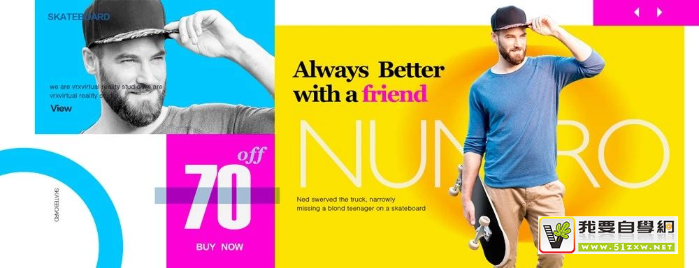 如果把所有元素都放进色块里,整体效果会比较规整、统一,但同时也容易显得刻板去,所以可以让某些色块元素适当地冲出色块,加强动感和灵活性。