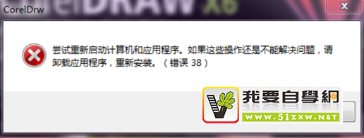 CorelDRAW X6提示:尝试重新启动计算机和应用程序。如果这些操作还是不能解决问题,请卸载应用程序,重新安装。