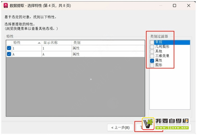 6、过滤器中只保留属性,点击下一步。