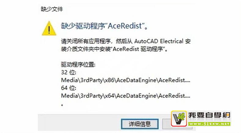 如图AUTO CADElectrical打开提示缺少驱动程序AceRedist。