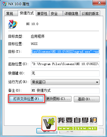 8、模板设置完成以后,开始添加到NX内部。找到NX安装位置,鼠标右键找到属性,打开文件夹位置。如下图:
