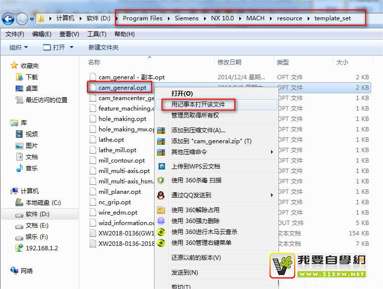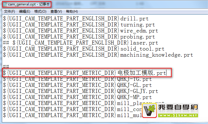 10.找到模板名称添加位置,路径为:(X:\Program Files\Siemens\NX 10.0\MACH\resource\template_set)。找到cam_general文件右键用记事本格式打开。如下图所示: