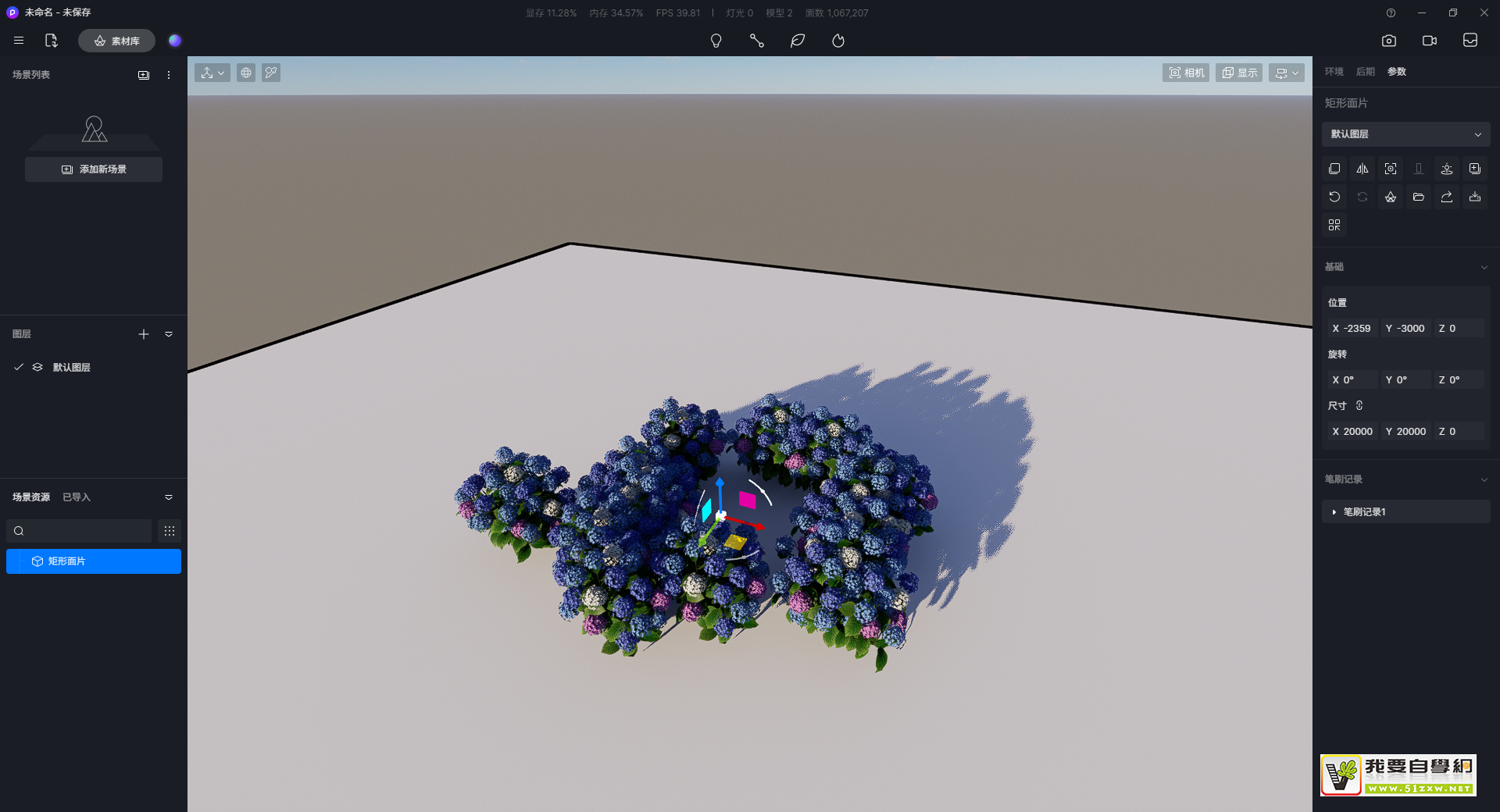选中笔刷/散布植物负载的模型,右侧边栏会显示对应的笔刷记录,可右键删除记录。若每次笔刷绘制时选择了相同植物,会合并为同一条笔刷记录。