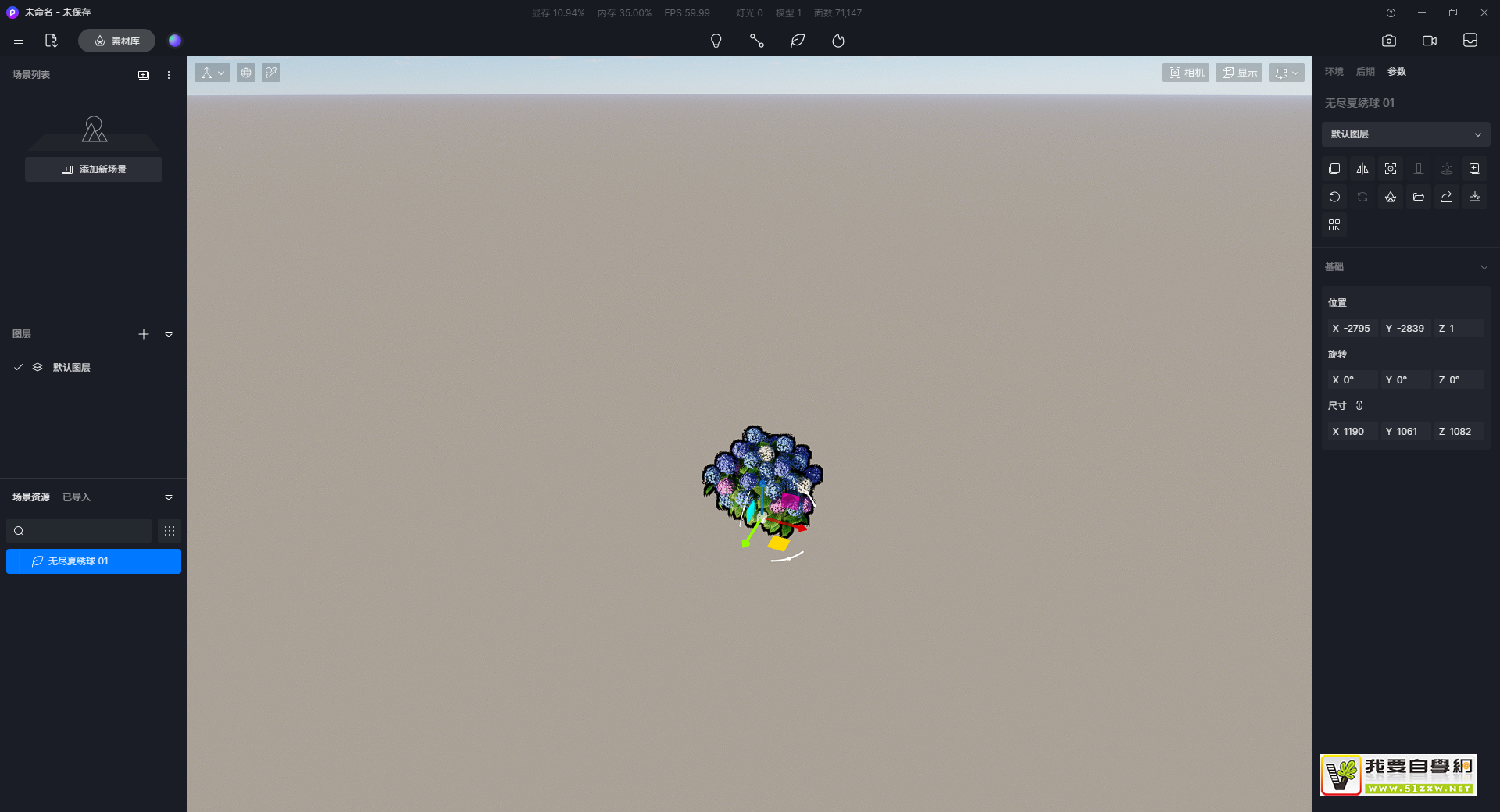 使用路径工具放置的植物,会显示在左侧场景资源中,可选中后删除。