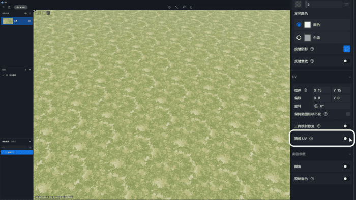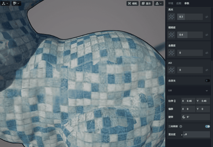 针对每个参数的单独UV,可以实现此栏位中的贴图具有独立的UV,独立于整体的UV。可以进一步拉伸、偏移、旋转,也可以使用三向映射修复。