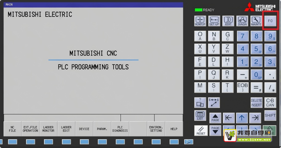 以三菱M70系统为例,正常情况下当按下MDI键盘右上角的“F0”按键时,系统自动会弹出PLC画面,在PLC画面中可以查看当前梯形图状态、备份PLC梯形图、在线编辑梯形图等操作;