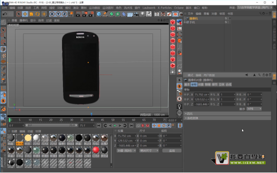 首先,我们打开C4D打开我们之前简历的诺基亚808手机模型。如下图: