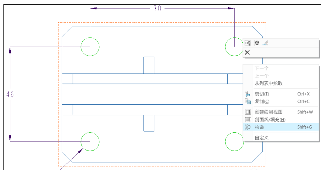 新版本还改进了构造线的创建,新的构造模式可让我们在创建最终几何之前,使用虚线草绘参考几何。此模式支持构造线、弧、矩形等。此增强功能增加了构造模式几何的多样性。可以单击“草绘”> “构造模式”或者右键单击绘制图元以显示“构造”快捷菜单。